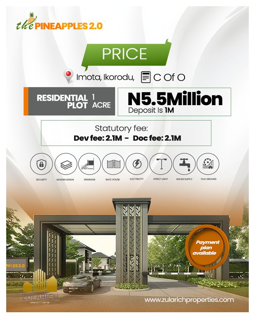 Nestled in the fast-growing area of Imota, Ikorodu, Lagos, lies one of the largest estates “The Pineapples”. This estate boasts proximity to key landmarks such as Caleb University, the Imota Rice Mill, Imota Roundabout, Ikorodu Ferry Terminal, Lagos State University of Technology (LASUTECH), and the proposed new auditorium of the Redeemed Christian Church of God.